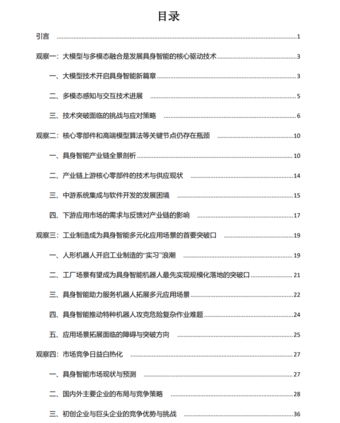具身智能产业的发展对于推动科技创新、提升产业竞争力、改善人们生活具有重要意义。在技术层面,具身智能产业的发展将带动相关技术的创新与突破,如算法优化、机器人硬件升级、传感器、伺服控制电机等,这些技术的进步创新将扩散到其他产业,为培育壮大新兴产业和未来产业提供新动力新支持。在产业层面,具身智能产业的应用将提高生产效率、降低成本、提升产品质量,推动传统产业的转型升级,加快构建现代化产业体系,巩固壮大实体经济根基。在社会层面,具身智能在医疗、教育、养老、娱乐等领域的广泛应用,将为人们提供更加便捷、高效、个性化的服务,改善人们的生活质量,提升社会福祉水平。