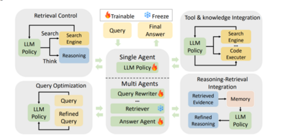 大型语言模型(Large Language Models, LLMs)的出现,通过开放式自然语言交互,彻底变革了信息获取与推理方式。然而,LLMs 仍受限于静态知识、事实幻觉(factual hallucination)以及无法检索实时或特定领域信息等问题。检索增强生成(Retrieval-Augmented Generation, RAG)通过将模型输出与外部证据对齐,有效缓解了这些局限,但传统的 RAG 流水线往往是单轮且启发式的,缺乏对检索与推理过程的自适应控制。