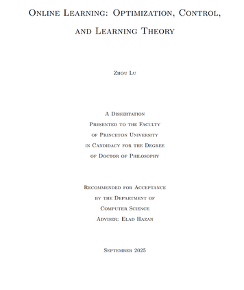 在线学习(Online Learning)是学习理论中的一种基础范式,主要研究如何从序列化数据中进行预测的问题。最初,在线学习被提出作为一种可学习性的数学模型,而如今,它已发展成为一个通用而灵活的理论框架,被广泛应用于优化、控制、经济学等多个领域,推动了算法创新与实证研究的进步。本论文系统探讨了在线学习的多方面理论问题,涵盖其基本极限与在优化和控制中的应用。 论文的第一部分聚焦于在线凸优化(Online Convex Optimization)。我们提出了更高效的自适应遗憾最小化算法,在查询效率与投影效率上均实现了改进。同时,我们还针对更具挑战性的在线非凸优化(Online Non-Convex Optimization)问题,提出了一种新的归约方法。 论文的第二部分关注在线非随机控制(Online Nonstochastic Control),这是对经典最优控制理论的推广,放宽了对代价结构与扰动模型的假设。我们提出了一种新的框架,用于控制边界稳定线性动态系统(Marginally Stable Linear Dynamical Systems)——这一类系统历来以分析困难著称。此外,我们设计了一种适用于具有一般损失函数的bandit非随机控制最优算法,并进一步开发了一种能够整合多个基础控制算法的元算法(meta-algorithm)。 论文的最后一部分转向**学习理论(Learning Theory)中的核心问题。我们建立了一种用于归纳推理(Inductive Reasoning)的充要条件——这是流行病学中的一个基础性问题——并揭示了其与在线学习理论之间的新联系。同时,我们还在多模态学习理论(Multimodal Learning Theory)**方面提出了新的结果,展示了在统计与计算层面上均可证明的性能优势。 综上所述,本论文在推进在线学习理论理解的同时,也拓展了其在更广泛领域中的适用性,为研究者与实践者提供了新的洞见与方法工具。