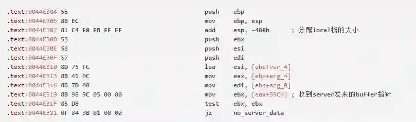 进入read_server_string_to_buffer这个call,我们看看分配栈的大小为0x408