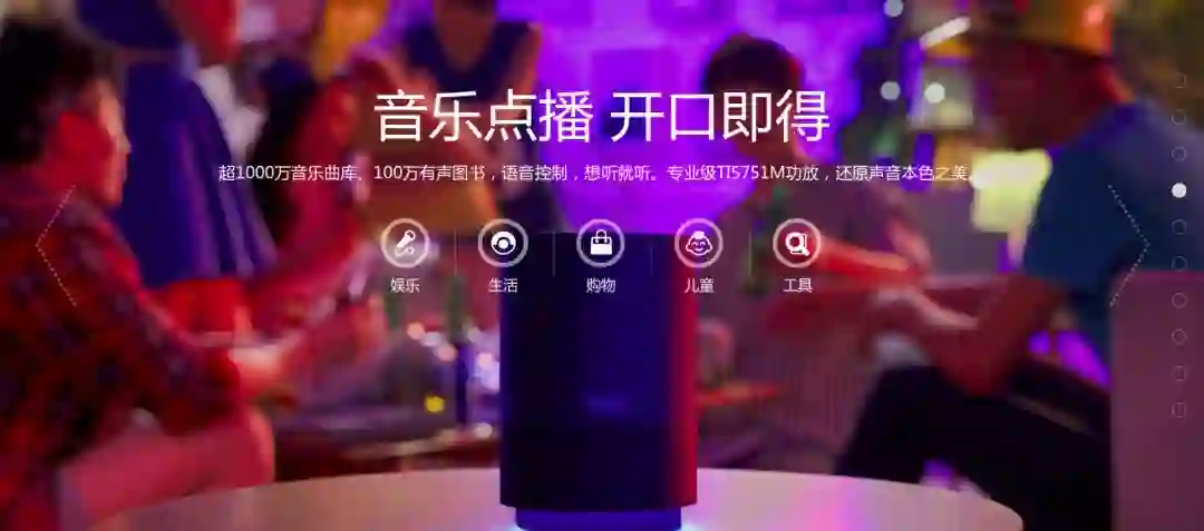 下面是天猫精灵智能音响,可进行语音识别、对话交互,应用与娱乐、生活、购物、智能家具控制等方面,属于新一代音箱。