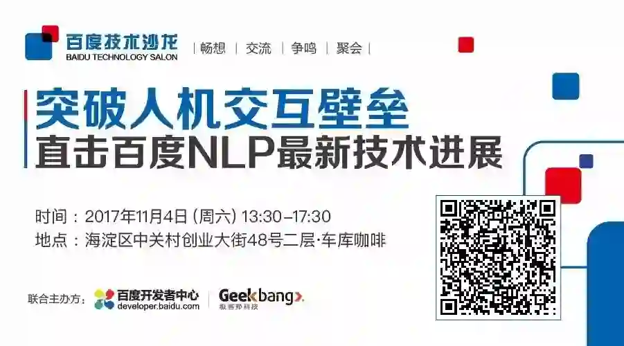 由于场地有限,本次活动为限额免费报名,扫描下方二维码或者点击阅读原文,填写报名信息,活动前一天我们将会以短信的形式发送参会邀请。有技术有案例有指导,这么全的百度 NLP 模块使用手册,你应该去看看~