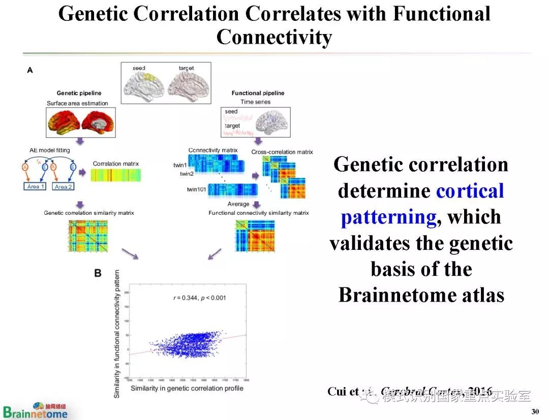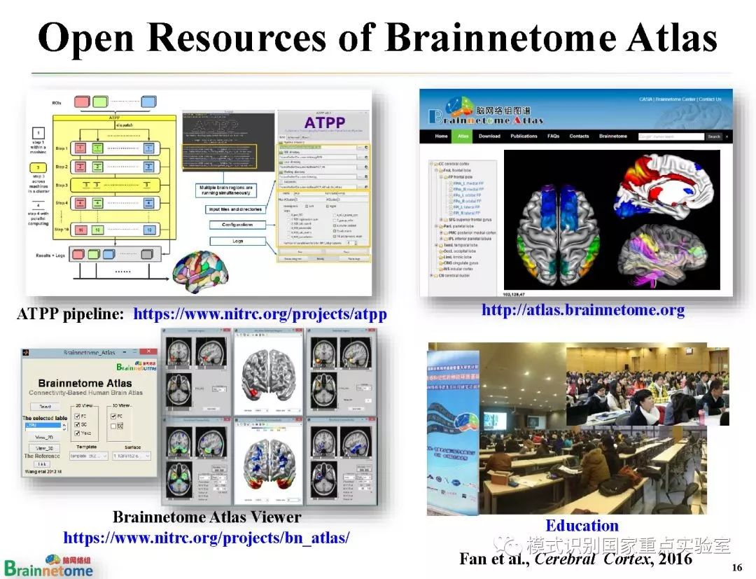 脑网络组图谱是比现有脑图谱既具有更精细的脑区划分、又具有不同亚区解剖与功能连接模式的全新活体人类脑图谱。2016年,脑网络组图谱的成功绘制入选了两院院士评选的 “2016年中国十大科技进展新闻”,以及 “2016年中国十大医学进展”。2018年,人类脑网络组图谱入选“中国科学院改革开放四十年40项标志性科技成果”之一。该成果受到了科技部973项目、国家自然基金以及中科院先导项目的资助。