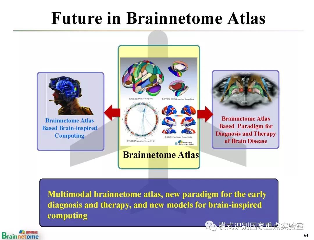【导读】脑是人体最为复杂的器官,脑图谱是理解脑的结构和功能的基石。它为探索复杂的脑部结构和异常变化进行"导航"。因此,脑图谱绘制一直以来都是神经科学、认知科学、心理学和脑疾病研究的共同前沿领域。模式识别国家重点实验室脑网络组研究中心负责人蒋田仔研究员的报告详细阐述了研究团队近10年来在人类脑网络组图谱方面的研究进展,从脑网络组图谱的绘制、验证与应用三个方面,系统回顾了脑网络组图谱的原创思想、构建框架、生物学基础、以及在脑认知与疾病中的应用示范,并对脑网络组图谱的未来发展从多模态集成、个体化绘制以及多尺度验证三个方向进行了展望。我们希望该报告能够帮助读者厘清研究脉络,明晰未来走向。