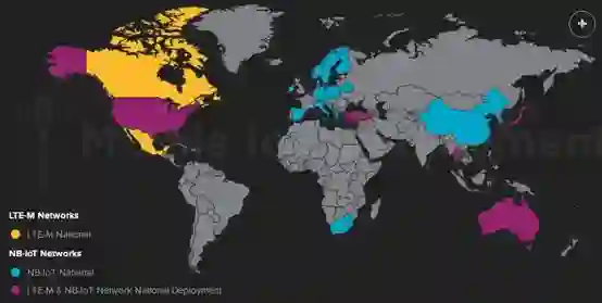 作为3GPP主导的通信标准,NB-IoT/eMTC还是得到全球大部分主流运营商的青睐。根据GSMA收集的数据显示,目前全球已有超过30家主流运营商推出60张蜂窝物联网网络,包括NB-IoT和eMTC(LTE-M),其全球分布区域如下: