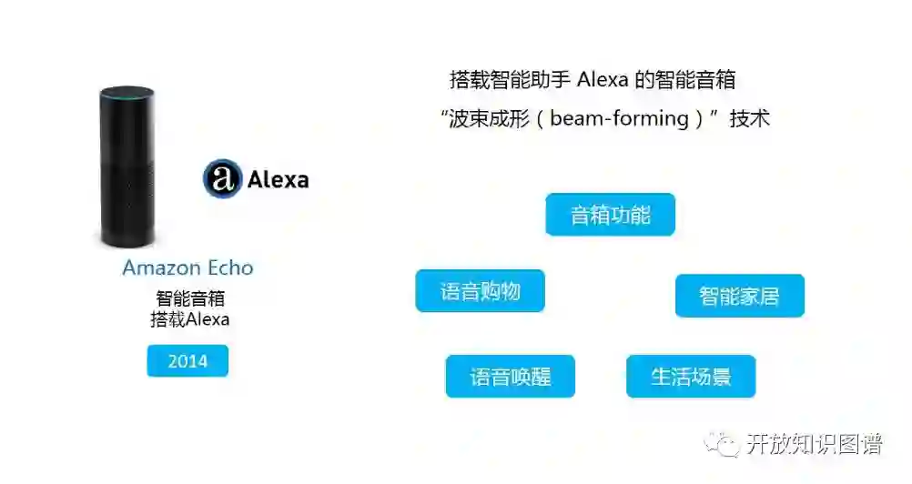 Alexa 作为亚马逊 Echo 智能音箱背后的 Bot 框架,通过 Skill Set 的形式不断扩展其功能,其内核是亚马逊在 2016 年底发布的 Lex,并对接专注图像识别的 Rekognition 和基于机器学习特别是深度学习技术的快速 TTS(文本到语音转换)。细心的观众会发现 Echo 音箱并没有提供任何屏幕,仅通过语音进行交互,依托 Amazon 的内容资源和电商购物优势提供各种智能交互。这种以语音为主的交互方式在家庭、车载等领域得到广泛关注和应用,由此也提出了 Voice UI 的概念。除了语义理解,这里需要强调的是:对于 Echo 音箱的交互,是采用远场(通常 3-5 米)沟通的。对于远场语音交互,目前远比近场通讯的难度大,涉及到声源定位、噪声(如回声、背景噪声、各种声波反射折射产生的混响)消除、人声分离、声音增强甚至是声纹识别等各种技术挑战。目前通用的做法是采用麦克风阵列+波束成形等方案,不过有很大的提升空间。不过智能音箱是否能在中国成为一个爆款,这个还是一个未知数,当然这里涉及到更多使用习惯、价格、内容质量等很多非技术因素的考量,在此就不做具体展开。