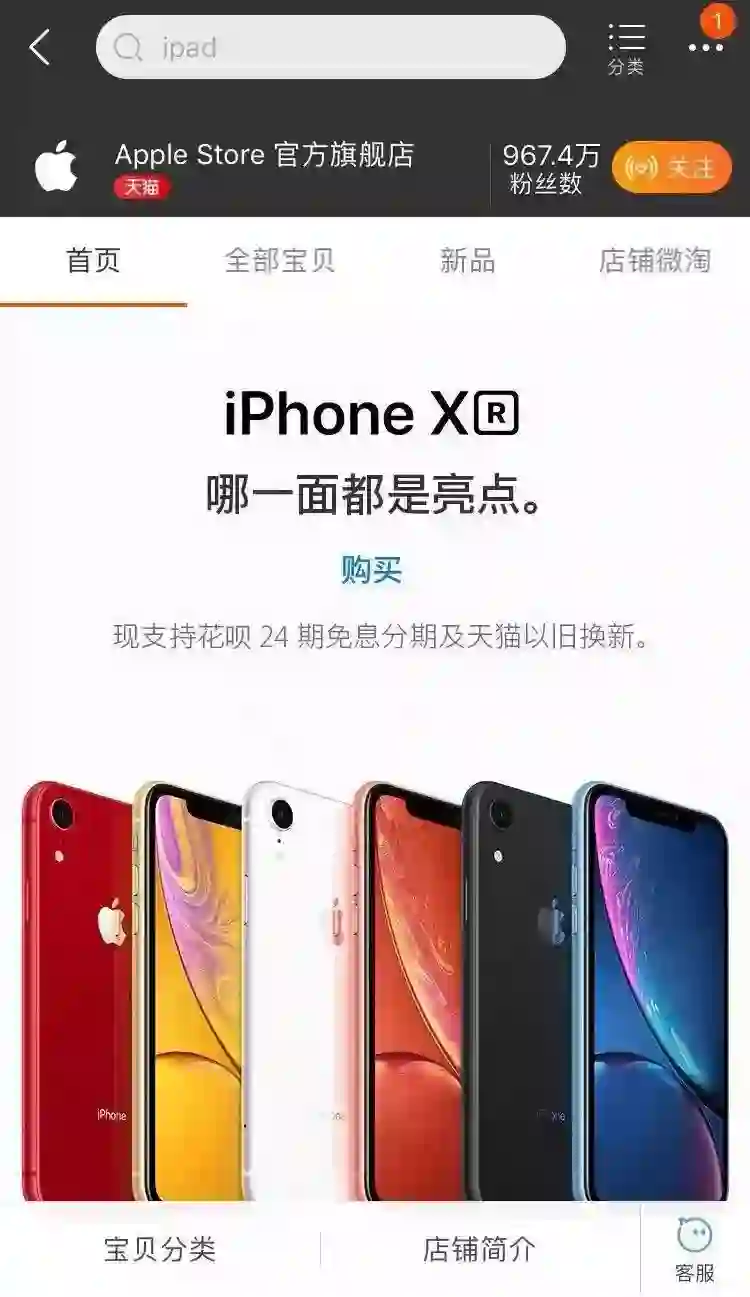 继苹果在中国市场下调iPhone售价、推出以旧换新等一系列活动后,Apple Store官方天猫旗舰店首次上线了花呗24期分期免息活动,适用于全系 iPhone 产品,活动将从3月4日持续至3月25日。