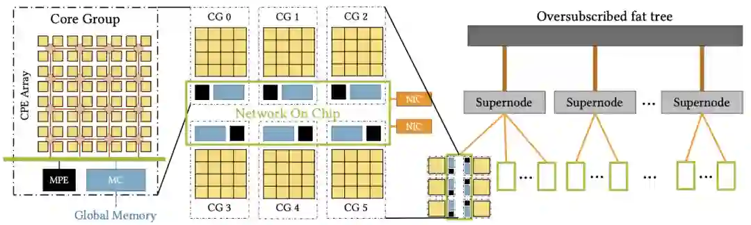只要不差钱,人人都爱大模型!这不,Meta就计划把CV、NLP、语音识别等技术所需的模型都做到「数万亿」的参数量。年初的时候就联合英伟达推出了一个全新的超算——「人工智能研究超级集群」( AI Research SuperCluster,RSC)。 既然Meta都这么搞了,是不是拿超算「炼丹」很好用?答案是,并不……尤其是当你手里只有14纳米架构的芯片时。为此,清华大学、阿里达摩院等机构的研究人员提出一种全新的思路——「八卦炉」(BaGuaLu)。这也是第一个针对在超算,也就是新一代「神威」上,训练参数量达到「百万亿级」模型的工作。论文链接:https://tinyurl.com/bdzc4d2j「八卦炉」通过结合特定硬件的节点内优化和混合并行策略,在前所未有的大型模型上实现了体面的性能和可扩展性。结果显示,「八卦炉」可以训练14.5万亿个参数的模型,使用混合精度的性能超过1 EFLOPS,并且有能力训练174万亿个参数的模型。显然,这已经相当于人脑中突触的数量了。简化的模型计算过程有趣的是,团队怕老外看不懂「谐音梗」,贴心地在论文的注脚中写道:「八卦炉是中国古代神话中的一种神奇炉子,可以生产药物。」看来,「炼丹」这个词着实是不好翻译啊。