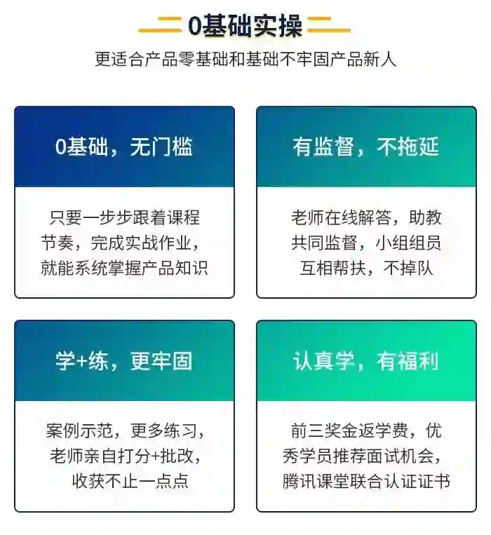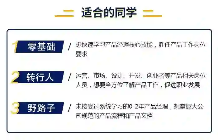 特别适合产品零基础、想转行的人,已经有3000人学完毕业了。有转产品想法的,不能错过这个高性价比的课程。