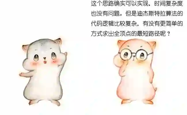 假如图中有n个顶点,如果不考虑堆优化,一次迪杰斯特拉算法的时间复杂度是O(n^2)。所以,把每一个顶点都计算一遍,总的时间复杂度是O(n^3)。