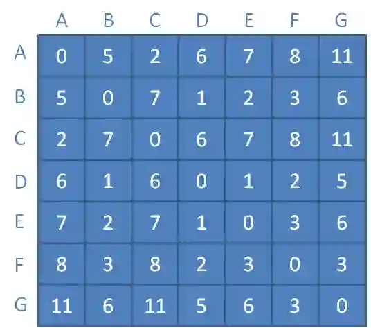 此时,矩阵中每一个元素,都对应着某顶点到另一个顶点的最短距离。