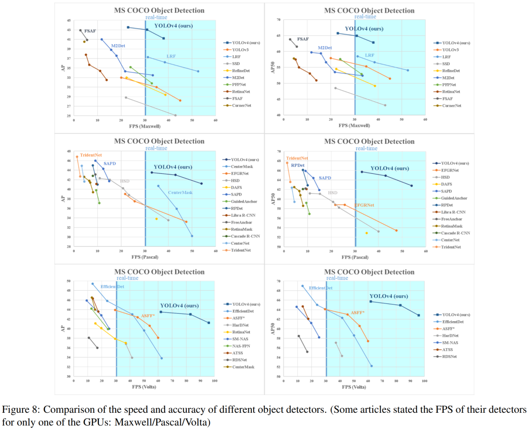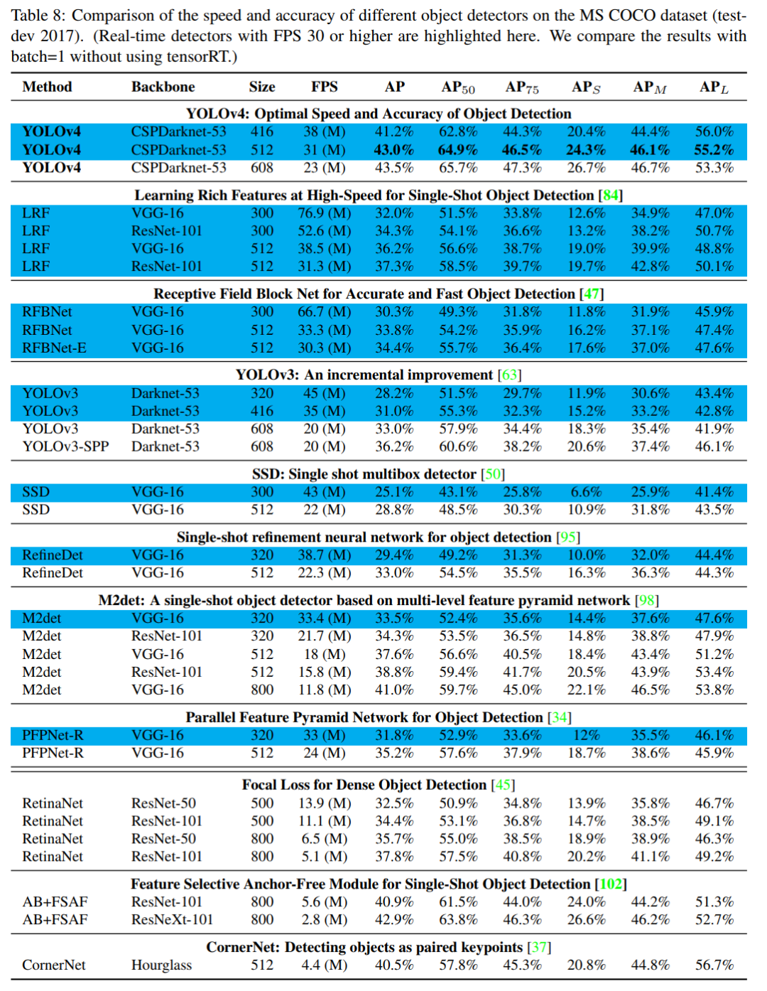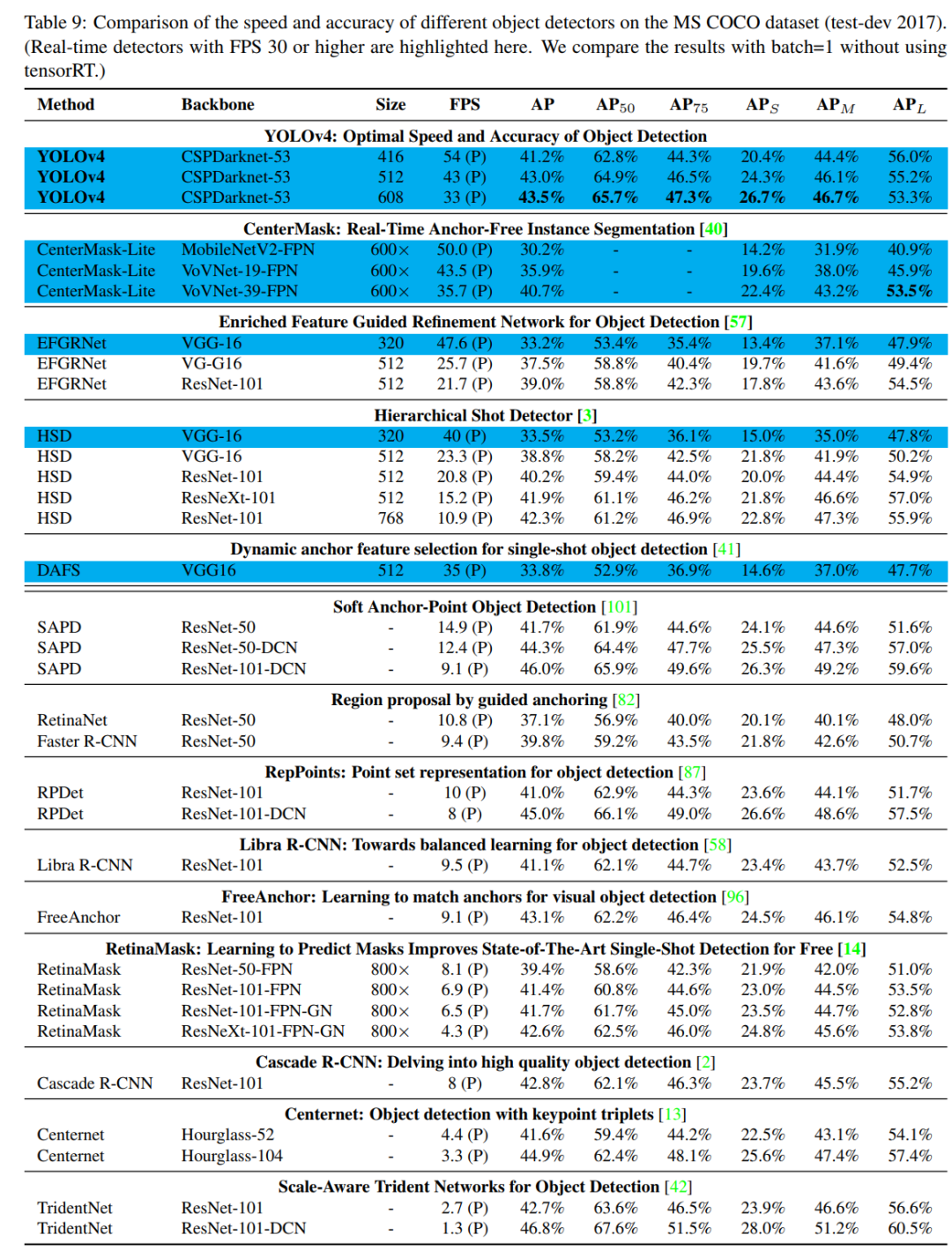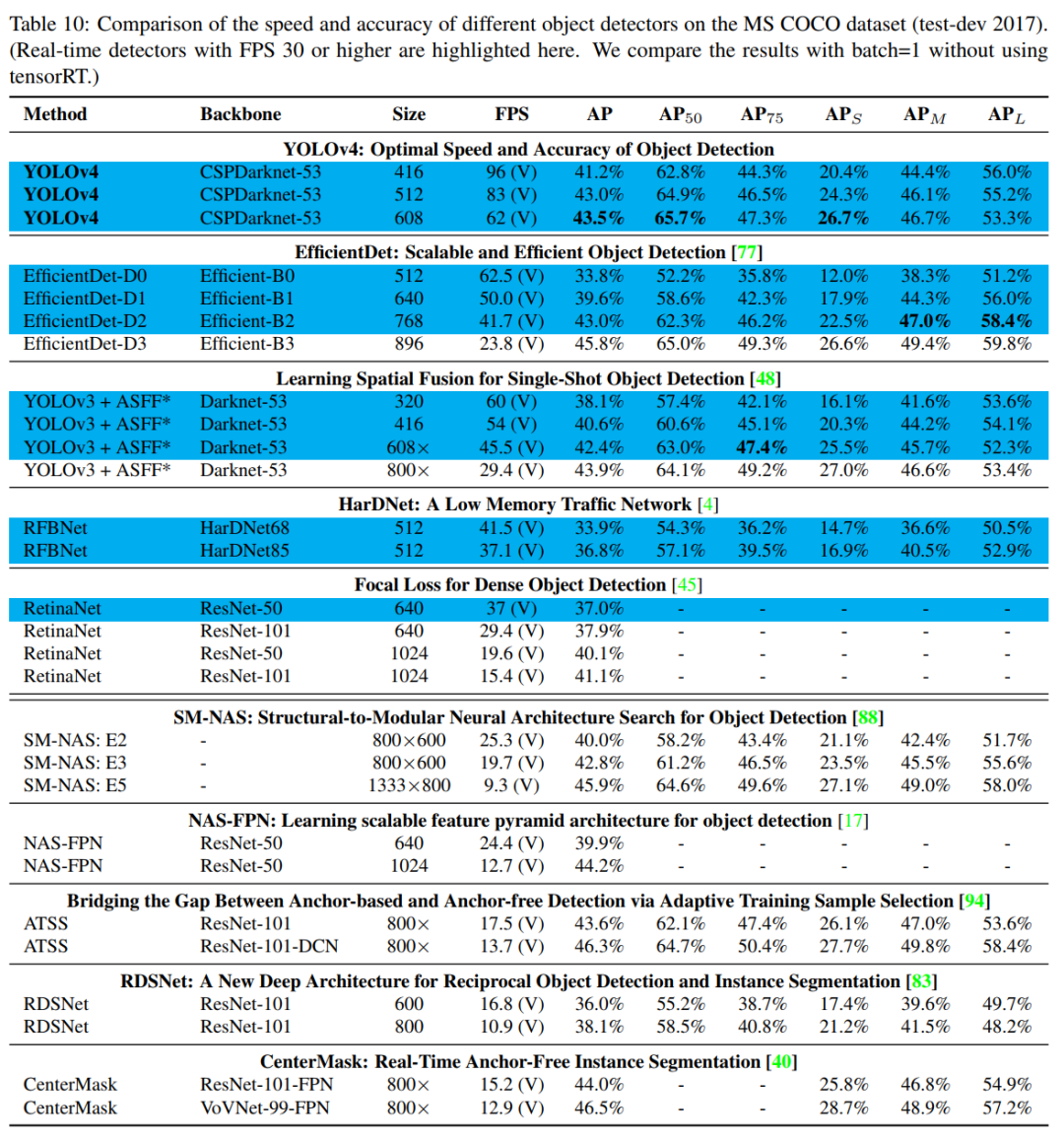 YOLOv4 在COCO上,可达43.5% AP,速度高达 65 FPS!
