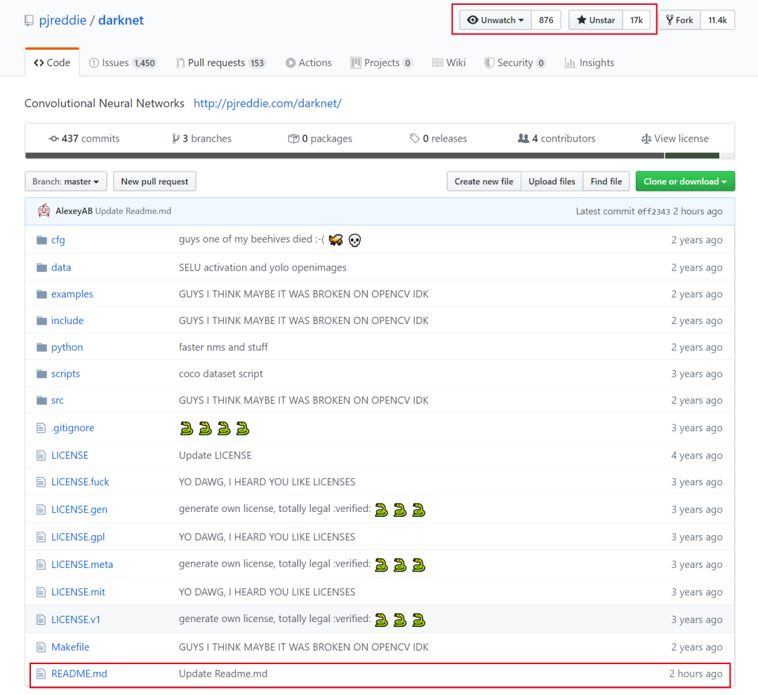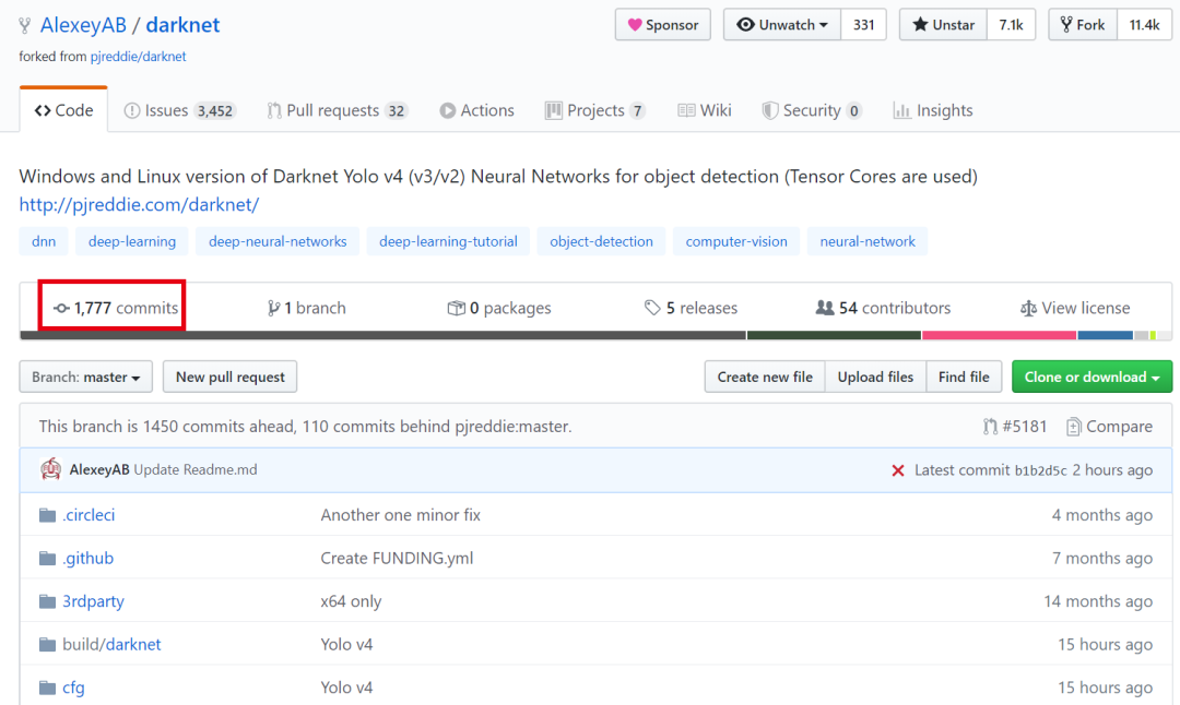 值得一提的是,这个版本的darknet的提交数已经来到 1777 次。试想一下,你一天提交一次更新,那么就需要你连续近5年不停更!