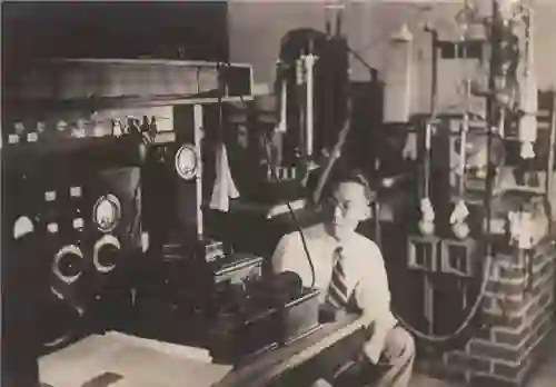 ▲卢鹤绂在美国明尼苏达大学实验室留影
