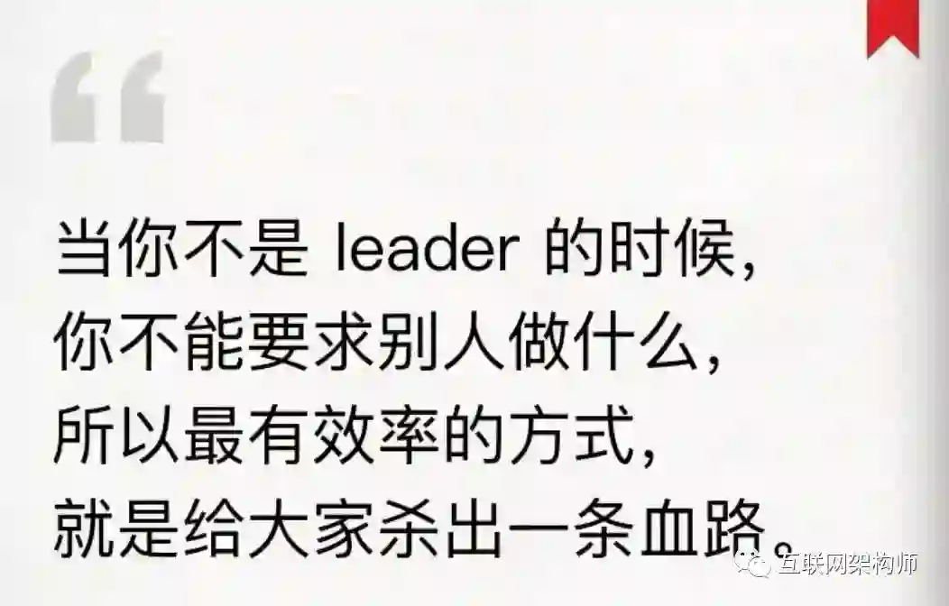 要真正进入到成为 leader 那个阶段,往往有两种方式,第一种是自上而下的,老板指派你,然后你就拿着尚方宝剑,但是往往拿到的人很少。另一种是指望在自己身上,我觉得最有效率的就是杀出一条血路。