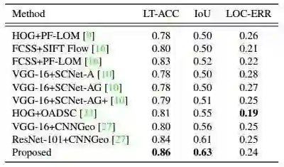 第三,如图3所示,作者所提出的方法在多个语义对齐标准数据集上获得了最佳性能。从图4可以看出,提出的方法很好的将两幅图像进行了语义对齐,几何变换关系也很好看。