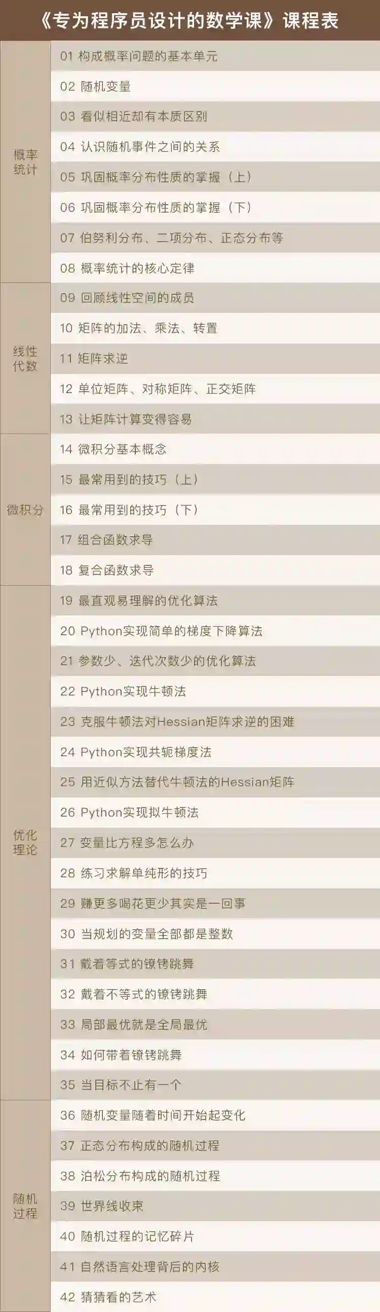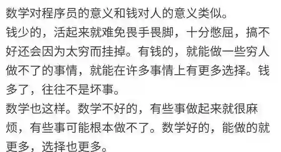 关于程序员重学数学,我不建议你把将以前的相关书籍拿出来啃一遍,耗费大量时间不说,关键是跟实际应用无法结合,学了还是不会用!