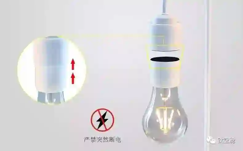 在突然断电的情况下,灯泡具备自动吸附功能,悬浮状态下的灯泡会被瞬间吸附在底座上,无需担心因断电而掉下后摔坏灯泡。