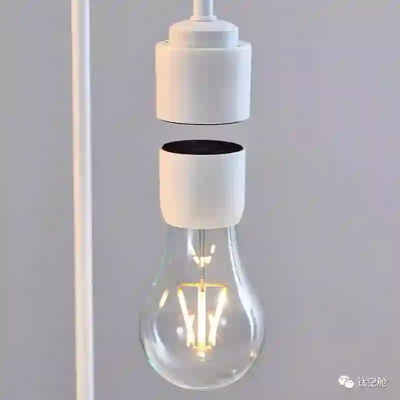 它采用磁悬浮技术原理,在类似灯口的底座内置磁铁,同时在专属灯泡内装上感应线圈,可与磁铁相互吸附,并且可以无线传输电力。