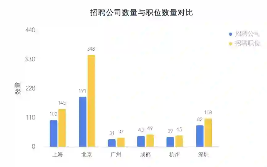 通过分析图中的数据,我们可以得知各城市的招聘职位数量: