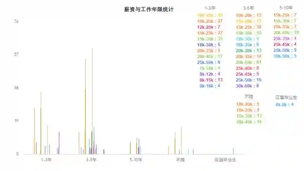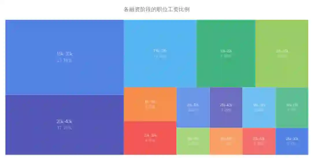 薪资这一部分,相信是很多人关注的地方。在有的文章中会看到,薪资部分是以平均值来展示的,我就很纳闷,因为对平均值并不是很关心,重点是无法体现薪资幅度,因此这里我会尽可能的把数据展现给大家看: