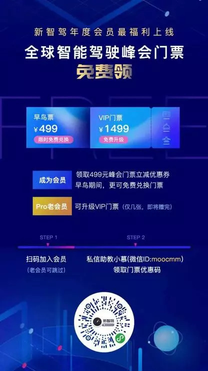 新老「新智驾年度会员」可领取 499 元峰会立减优惠券(会员专享),会员定向免费参与峰会,限量放出。部分 Pro 老会员可升级 VIP 门票,先到先得,领完即止。