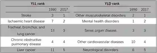 图5.2017年我国YLL和YLD主要疾病排名。(图源:参考文献3)
