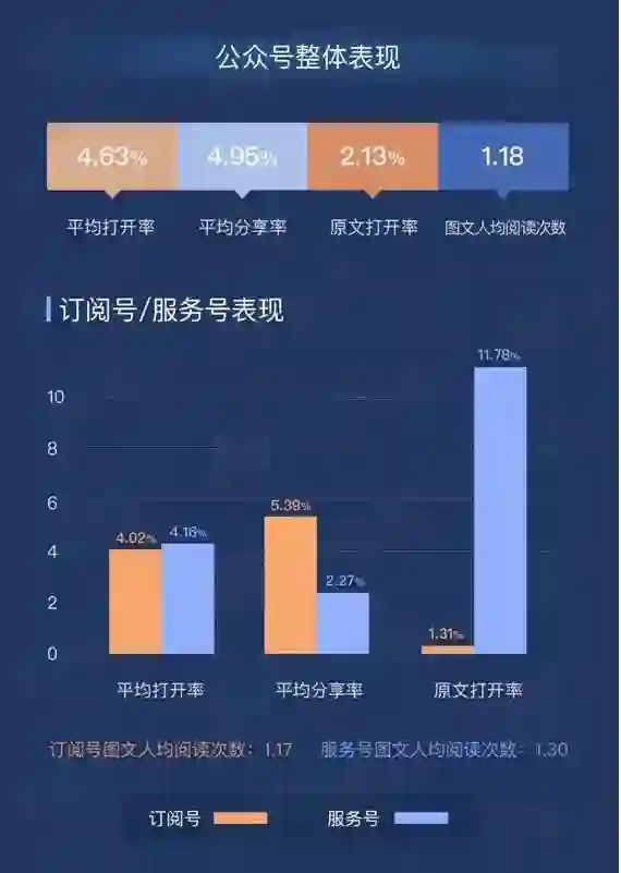 从我个人实际运营的经验来看,内容质量较高的情况下,平均打开率在10% 左右——而订阅号整体的打开率还不足5%。