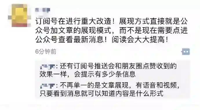 据小道消息称,微信订阅号将面临重大改版,将折叠模式改为Feed流: