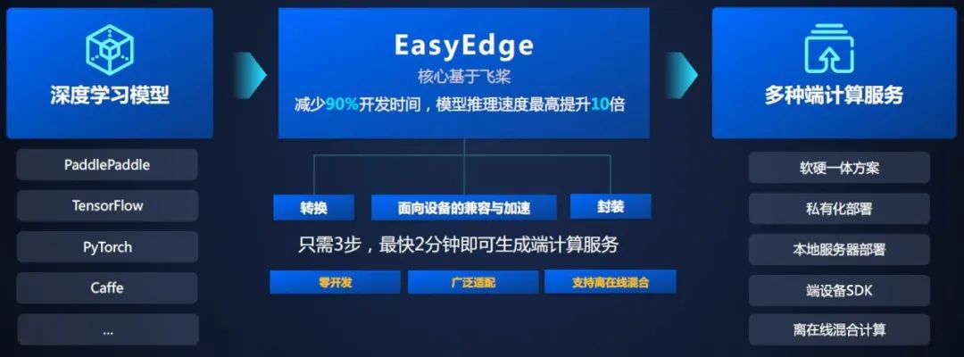 第二步:通过EasyEdge做转换→面向设备的兼容与加速→封装;EasyEdge自动完成端计算服务产物;