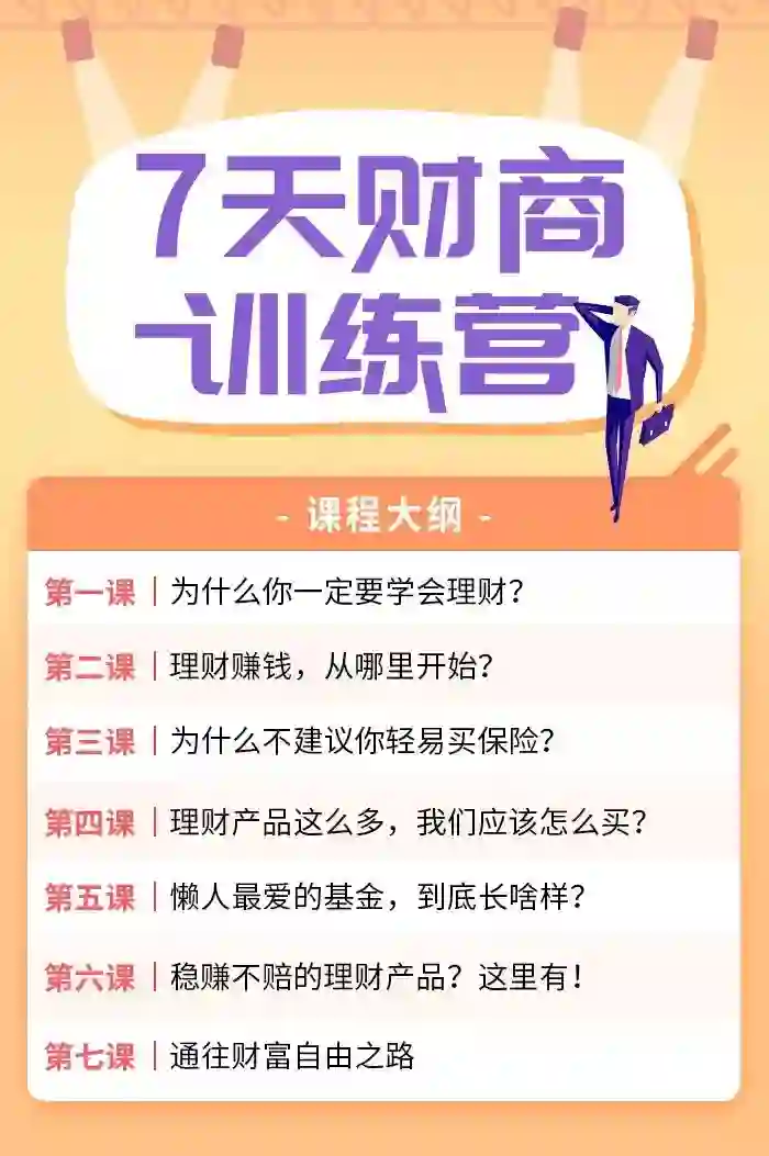其实,理财的门槛比你想象中低得多!只要学习方法得当,你完全可以用现在手头的零钱和工作之外的碎片时间,通过实践掌握基本的理财技能,而实现这一切只需7天!