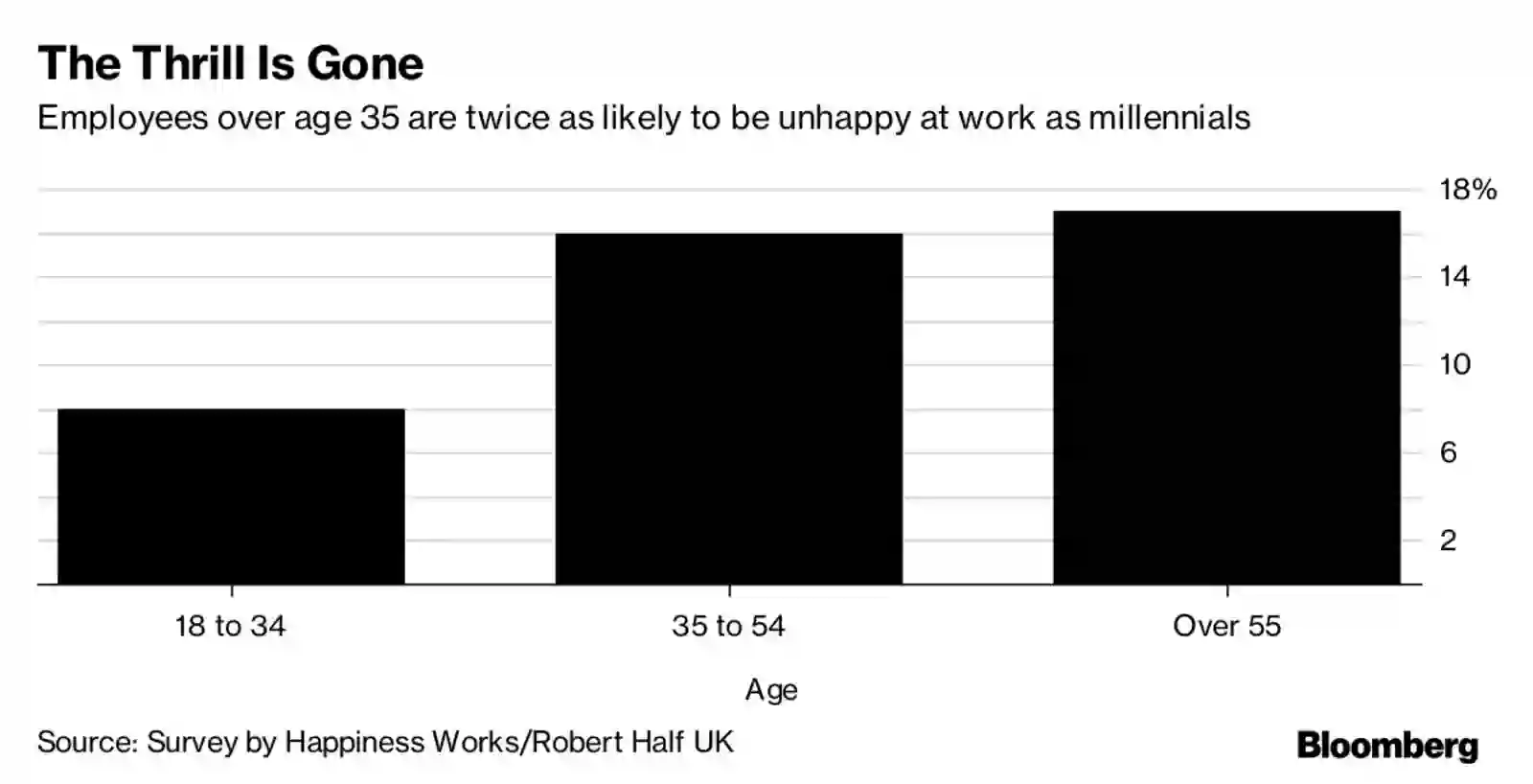 激情已逝:职场中,35岁以上的雇员的抑郁倾向是千禧一代的两倍