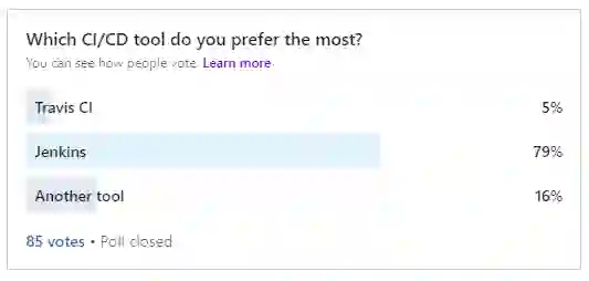 以 G2 为例,Jenkins 在 G2 上平均评分为 4.3 星,有 288 条评论;GitLab CI/CD 在 G2 上的平均评分为 4.4 星,有 270 条评论。可以说,Jenkins vs GitLab CI/CD 是一场旗鼓相当的竞争。有趣的是,Jenkins 是在 2011 年发布的,而且在 CI/CD 业务上,它一直是测试人员的首选。然而,自 2014 年发布以来,GitLab CI/CD 一直凭借尖端的功能而高居榜首。我们在发布这篇文章时,在社交媒体上进行了一次民意调查。