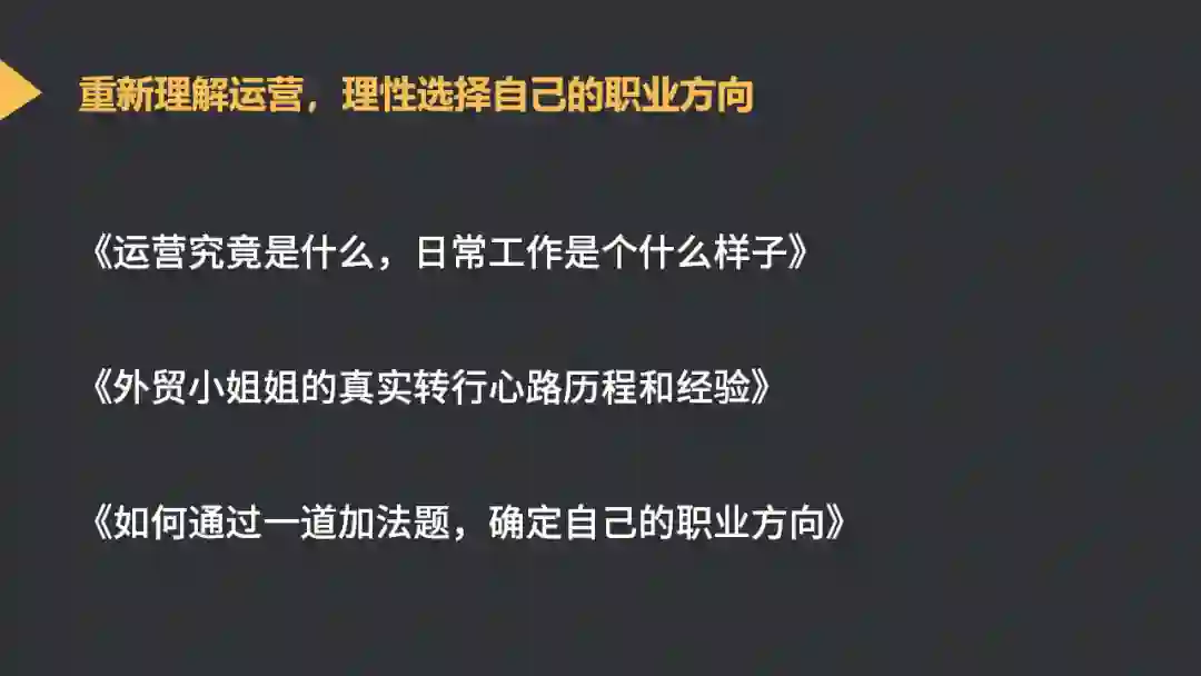 上面4大理由里,包含了很多很多的运营干货认知。这些运营干货认知,能够帮你解决很多转行方面的困惑。