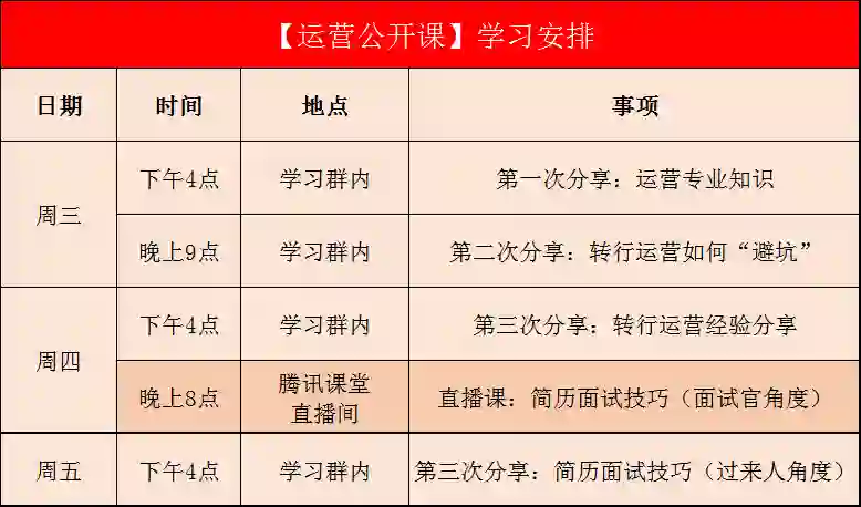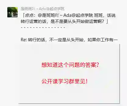 如果你也有这些困惑,强烈建议参加“腾讯课程&起点学院”联合打造的 运营转行公开课(仅需0.02元) ,更顺利地完成转行跳槽,拿到高薪。