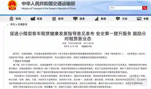 8月8日,交通运输部、住房城乡建设部联合发布了《关于促进小微型客车租赁健康发展的指导意见》(简称《意见》),从企业与政府两方出发,为我国汽车租赁行业的下一步发展提出了建设性的规划意见。