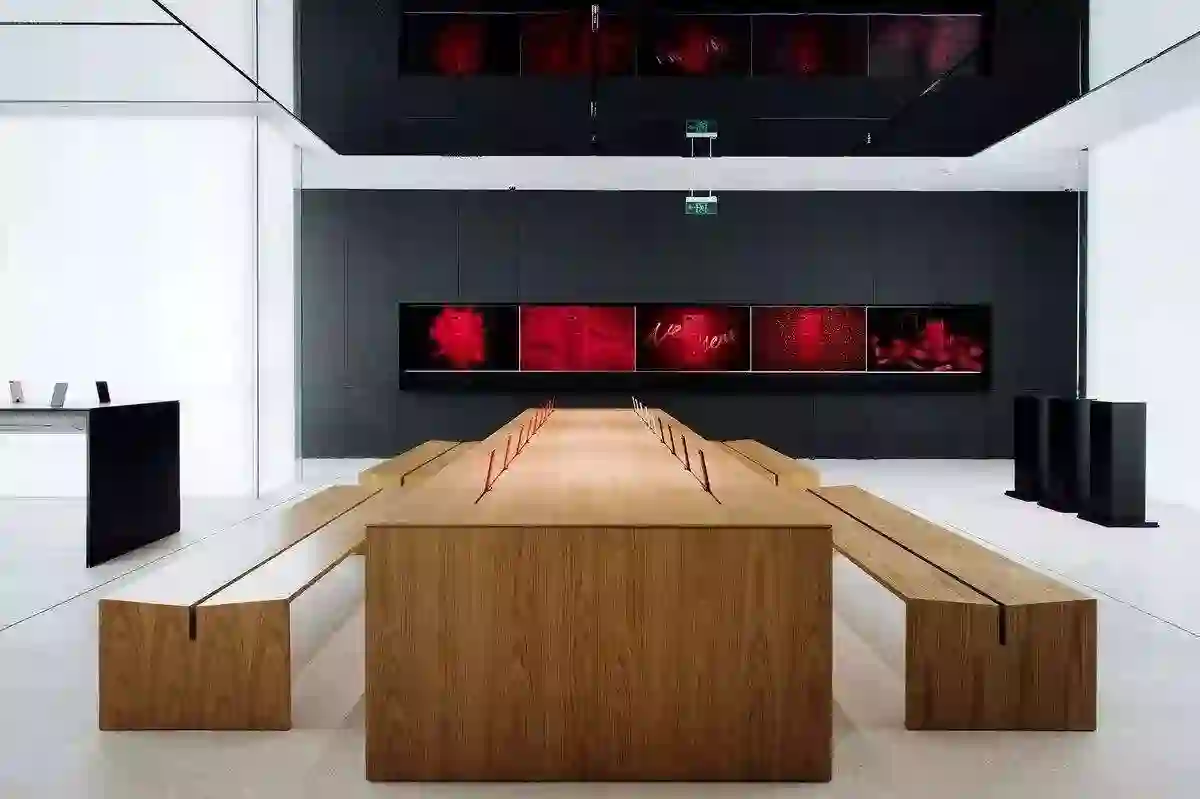 旗舰店的定位与苹果的 Apple Store 类似,展示自家所有产品的同时销售产品,但与其他 OPPO 线下店销售导向的设计不同,上海的这家旗舰店的装饰明显要更加有大城市的精英气息。