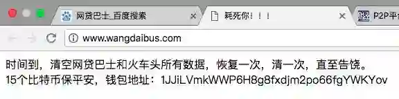 入侵黑客留言,已经清空了网贷巴士和火车头上面的所有数据,而警告只要恢复一次,就会再次清空一次,要想恢复,就要花15个比特币来保平安。