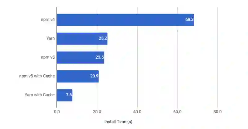 npm v5 确实很快,几乎是 npm v4 的四倍!在冷安装(cold install)的情况下甚至比 Yarn 还要快,但也只是快了一丢丢。在速度方面真正脱颖而出的是在暖缓存(warm cache)情况下的 Yarn,比 npm 快了足足两倍。这个测试的结论如下:是的,npm v5 与以前的版本相比确实表现出了强大的性能优势,但与 Yarn 相比,缓存安装速度仍然略逊一筹。