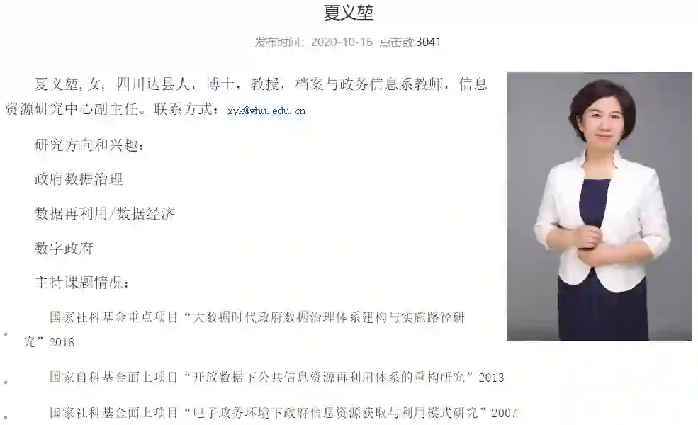 夏义堃,女,教授,博士生导师,现任武汉大学人文社会科学研究院副院长,武汉大学信息资源研究中心副主任。先后主持和参与国家社科、教育部、国家社科基金重大项目、教育部哲学社会科学研究重大攻关项目、国家自然科学基金项目等各类科研项目10余项,发表国内核心期刊及以上级别论文50余篇,包括《中国图书馆学报》、《情报学报》论文7篇,多篇论文被人大复印报刊资料全文转载。