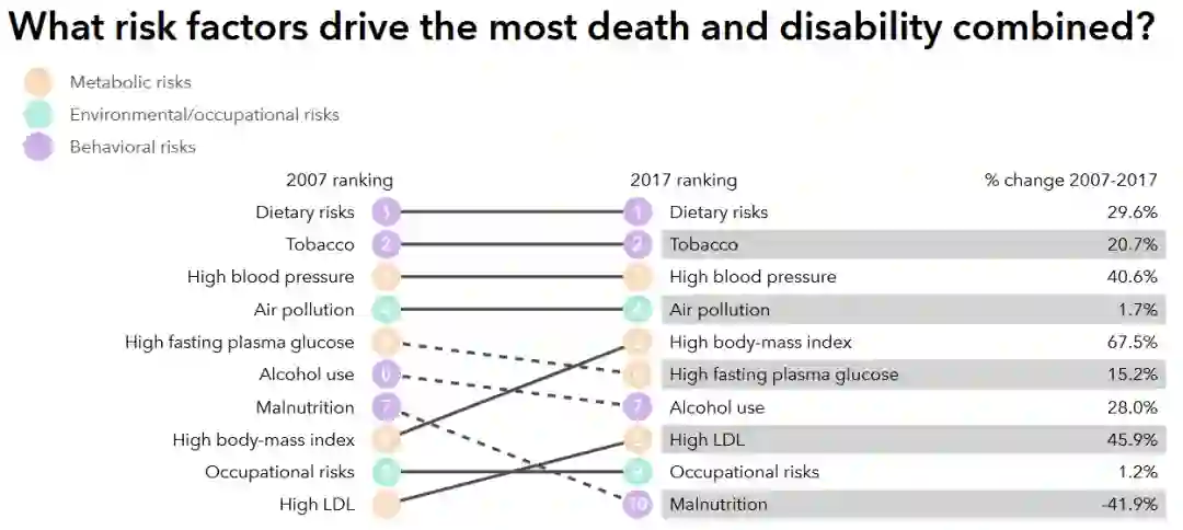 2007-2017年中国DALY主要风险因素分析。(图源:healthdata.org/china)