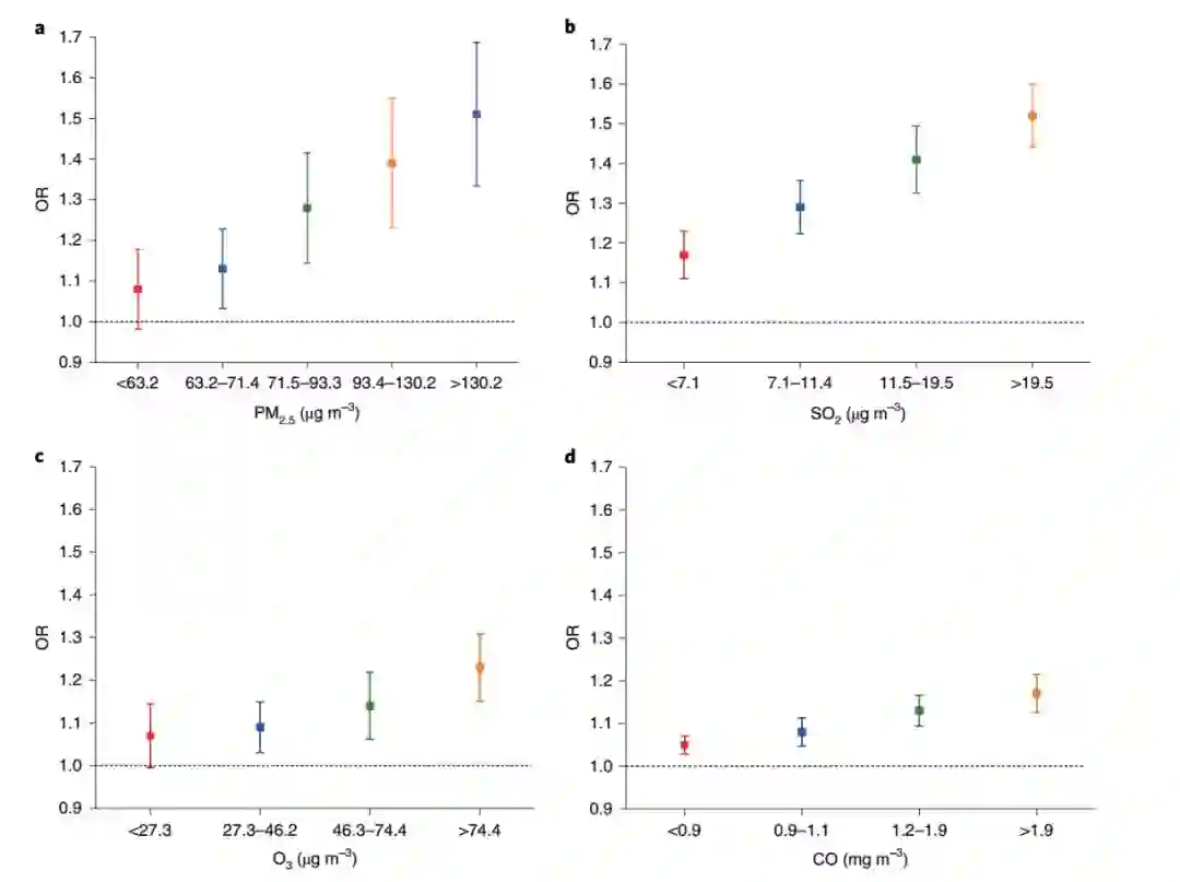 孕妇发生MAFT的风险与空气污染物浓度的相关性。(图源:参考文献3)