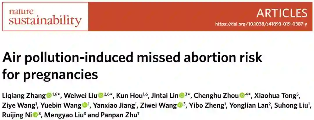 [3]Liqiang Zhang, Weiwei Liu , Kun Hou, et al. Air pollution-induced missed abortion risk for pregnancies. Nature Sustainability, 2019, doi.org/10.1038/s41893-019-0387-y
