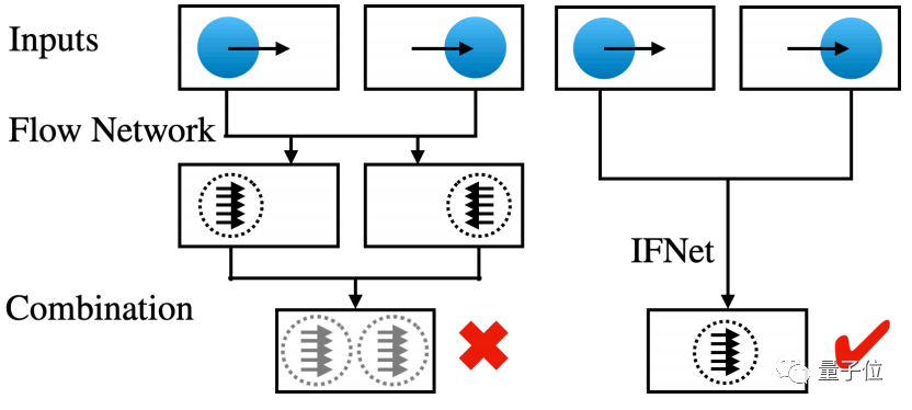 相比于利用前一帧和后一帧进行两次估计,这里的IFNET (a Specialized and Efficient Intermediate Flow Network)算法,将直接采用线性运动假设,对中间帧进行一次估计。