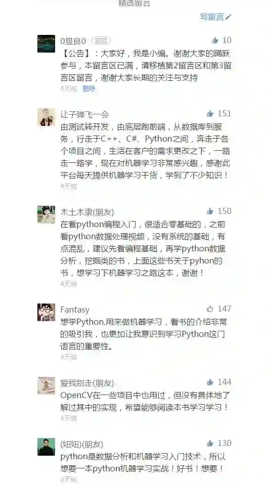 同时,没有获奖的小伙伴们也不必遗憾,小编会尽快组织第3期的送书活动。除此之外,今后我们也会组织更多有意义的活动,为机器学习算法与Python学习的小伙伴们谋求更多的福利!