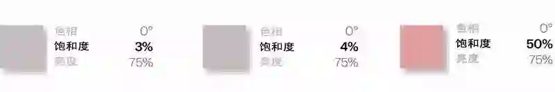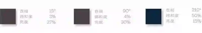 这里有三种颜色及其色相、饱和度和亮度值。他们都看起来很暗,彼此间没有大不同: