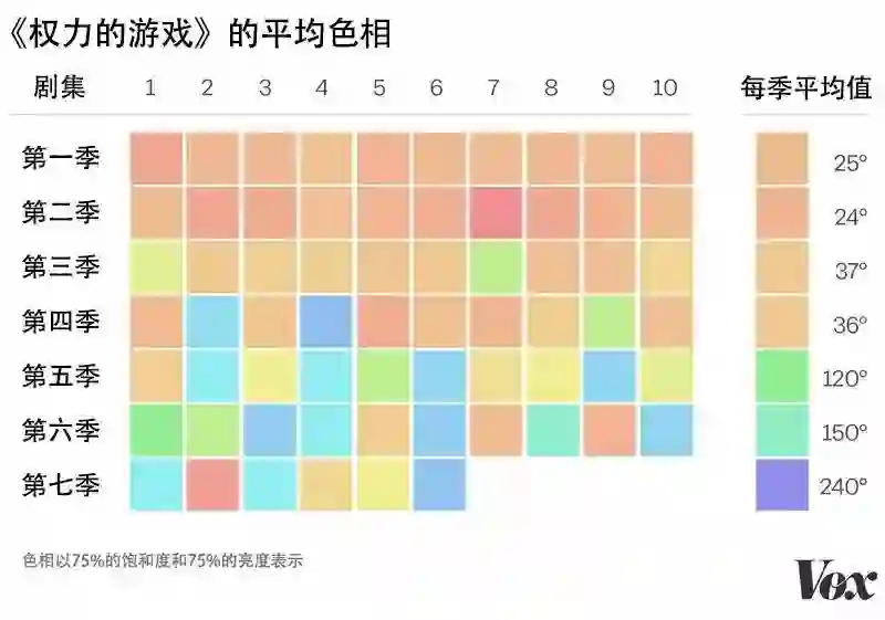 编译来源:https://www.vox.com/culture/2017/8/24/16162814/game-of-thrones-color-spectrum
