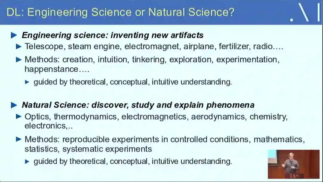 LeCun 认为,深度学习在一定程度上是一门 “工程科学”,我们通过理论洞见、直觉、灵感和经验探索来创造新的工件。但是理解深度学习在一定程度上是 “物理科学”,需要理解这个工件的一般属性。