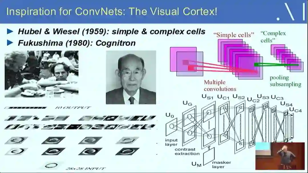 上面这张 PPT 展示了深度学习的根源,即启发了深度学习的一些理论。