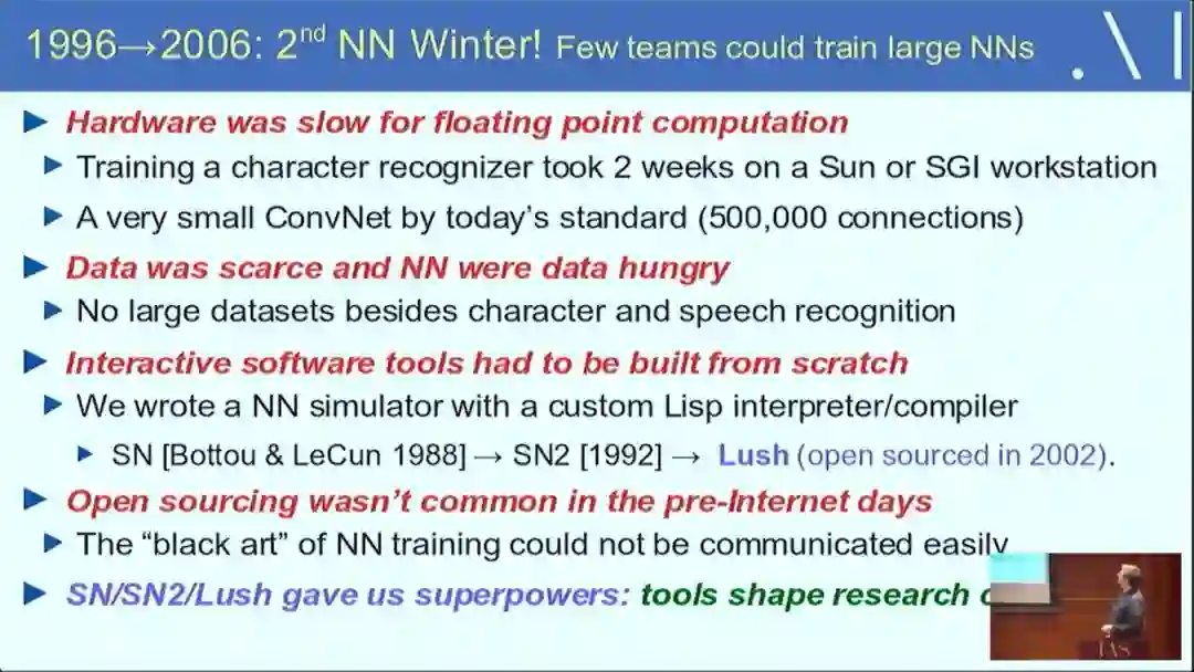 1996~2006 年的 10 年间,是神经网络的第二个冬天。这期间,很少有团队能够训练大型神经网络。